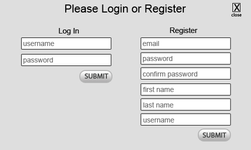 light box--login and register. let me know if you need the 'close' x.